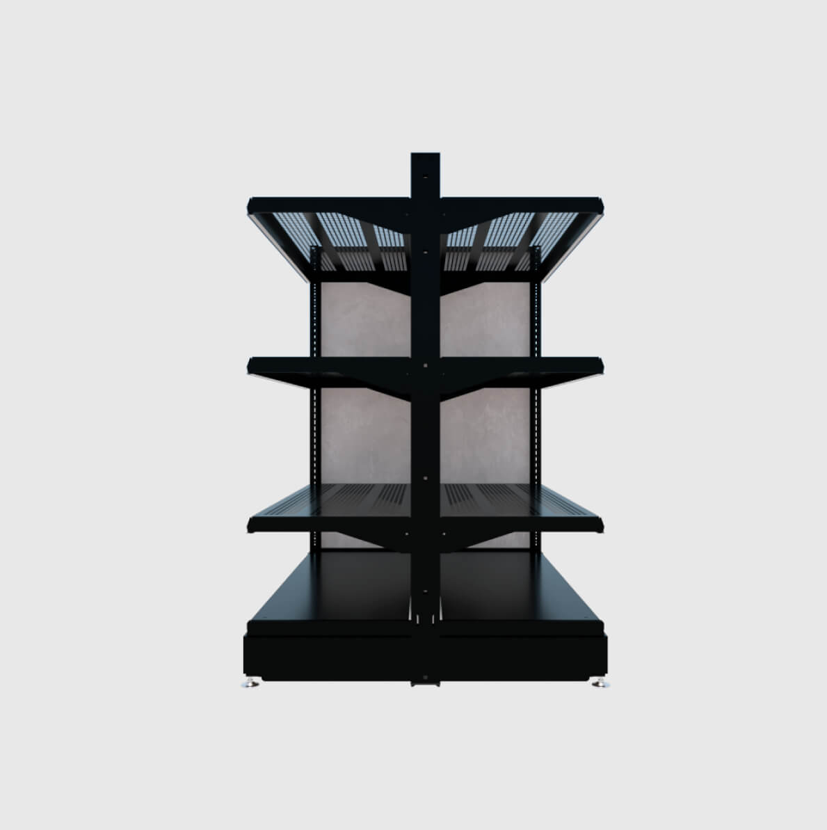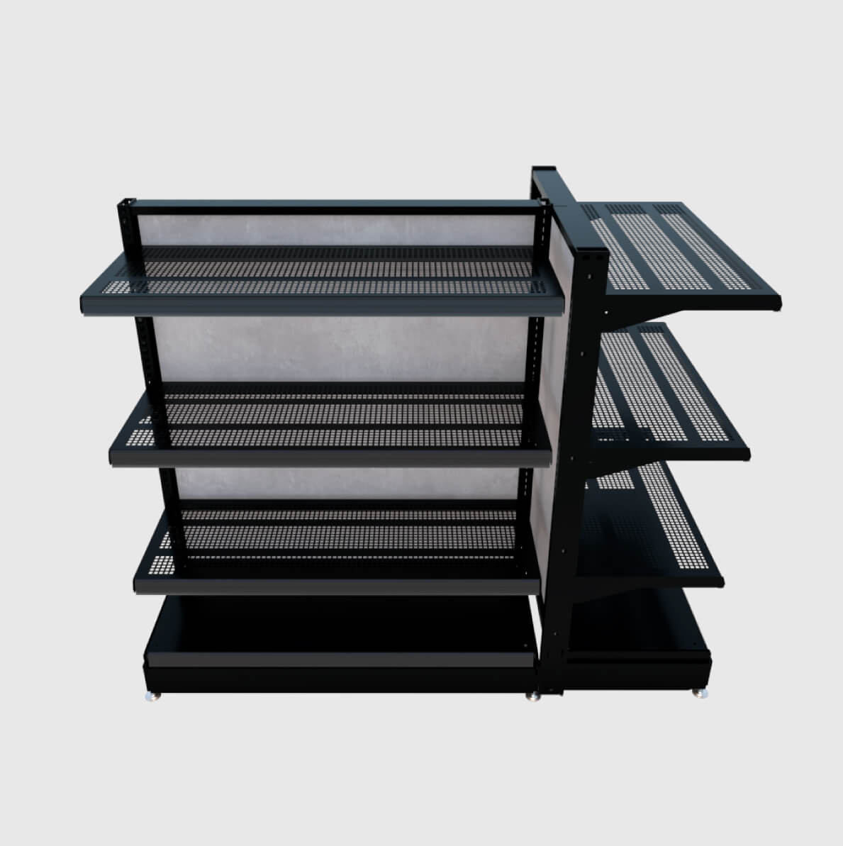 Esta configuración de góndola se utiliza para las configuraciones en las paredes perimetrales de la tienda.